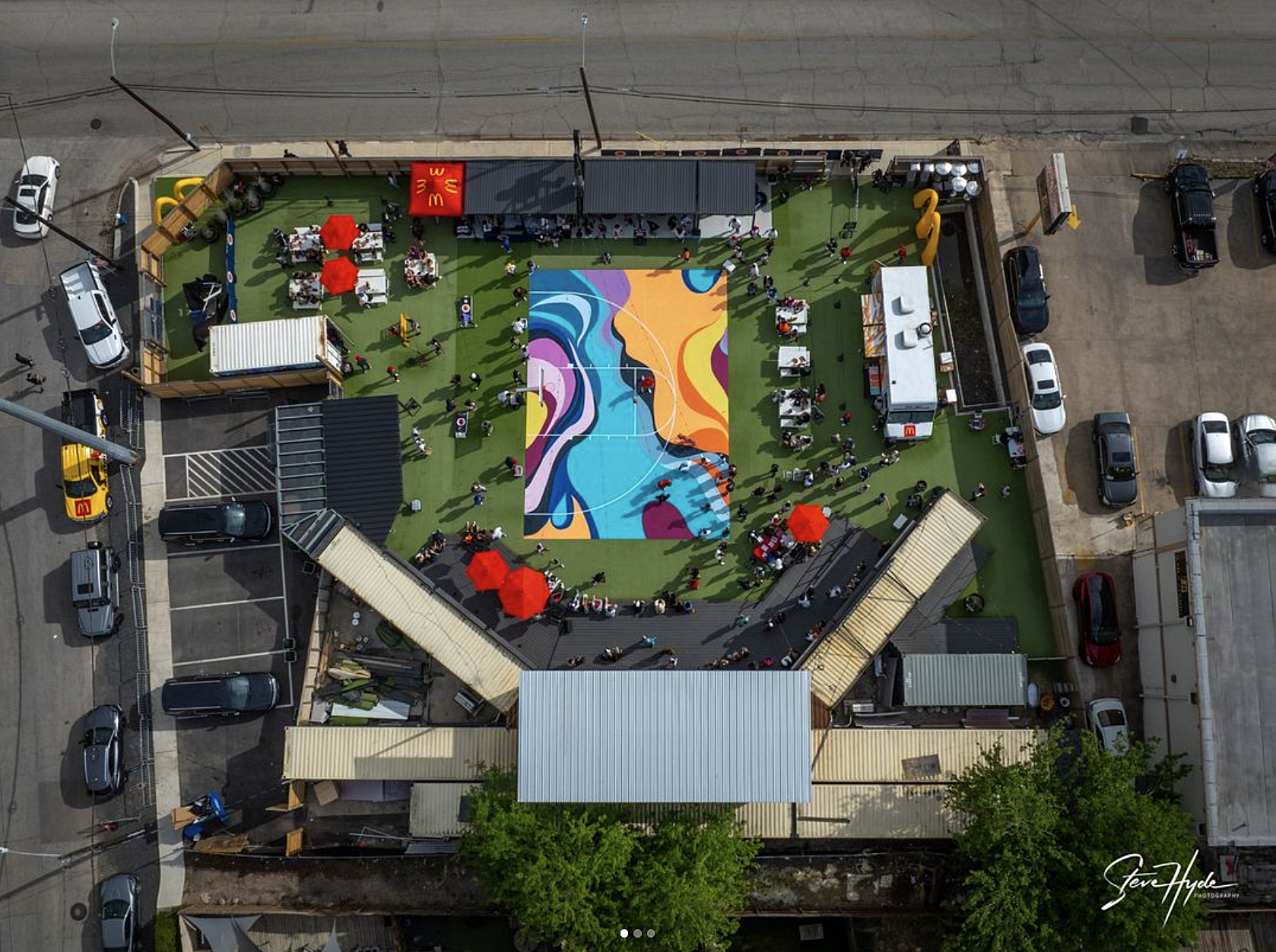 Adding color to an otherwise monochromatic space to highlight the flow and vibrant nature of basketball and sneaker culture.